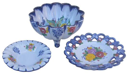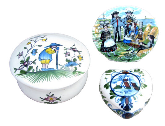 Collection of French Quimper & Dutch Delft Style Pottery, Set of 3
