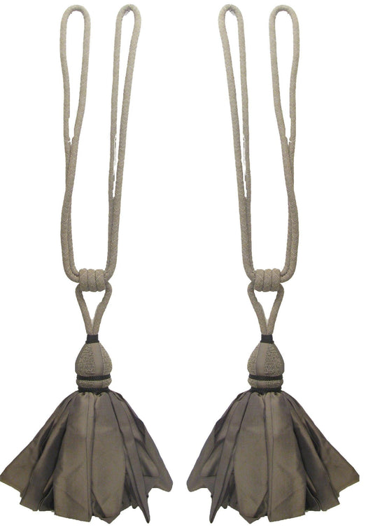 Pewter & Black Tiebacks With Ballgown Tassels - a Pair