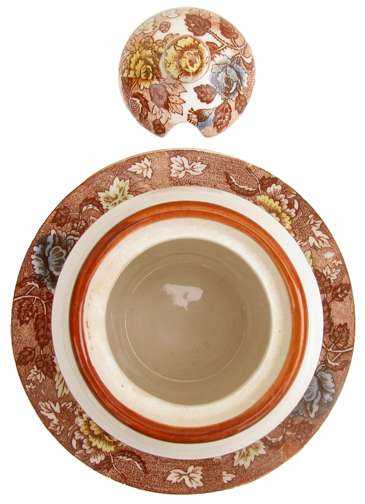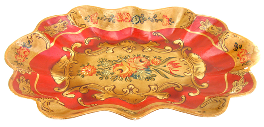 1940s Occupied Japan Coral & Gold Paper Mache / Papier Mache Bowl