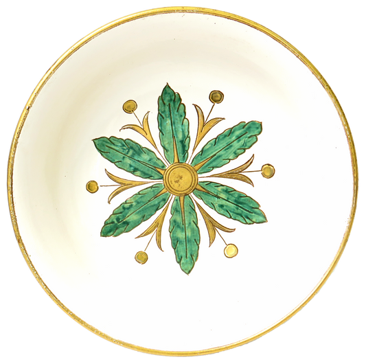 1950s Ugo Zaccagnini Italian Green & Gilt Porcelain Footed Compote / Tazza