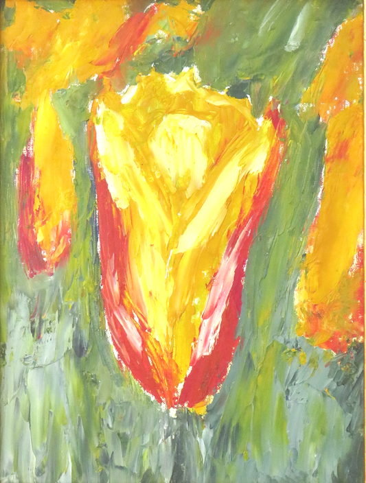Abstract Tulip Painting in Gold Frame