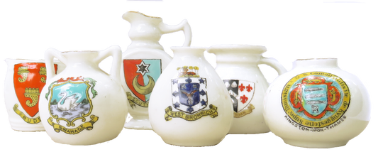 Antique English Heraldic / Crested Ware Staffordshire Miniature Porcelain Collection, Set of 16